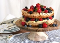 3. Carefully place the second layer on top, meringue side up. Top with beautiful berries, as desired.